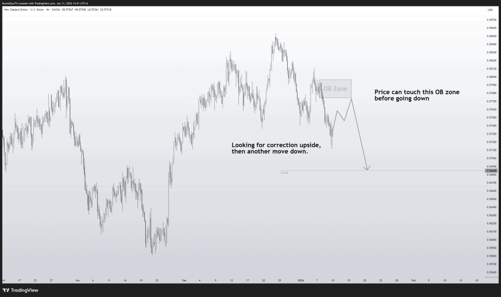 Similar to the Cable (GBPUSD), the Kiwi Dollar is currently in a downtrend, but we are not chasing the lows. The market has left a clean Order Block (OB) Zone in the premium pricing area.