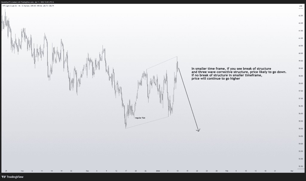Oil is presenting a classic Regular Flat correction on the 4H timeframe. This pattern typically signals a continuation of the trend, but patience is required here as the market decides its next leg.